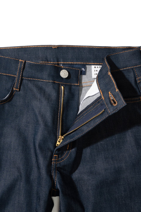 本物のデニム生地に近づけるかを追求した玄人好みの生地。見て、触れた人でも普通のインディゴデニムと感じる仕上がり、ココに様々な機能が付与されているとは一目では気が付かないことでしょう。